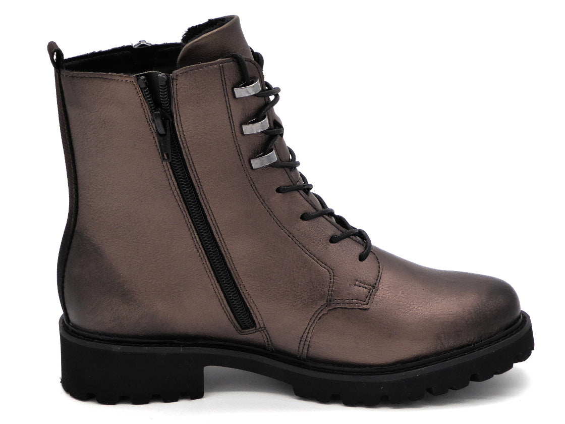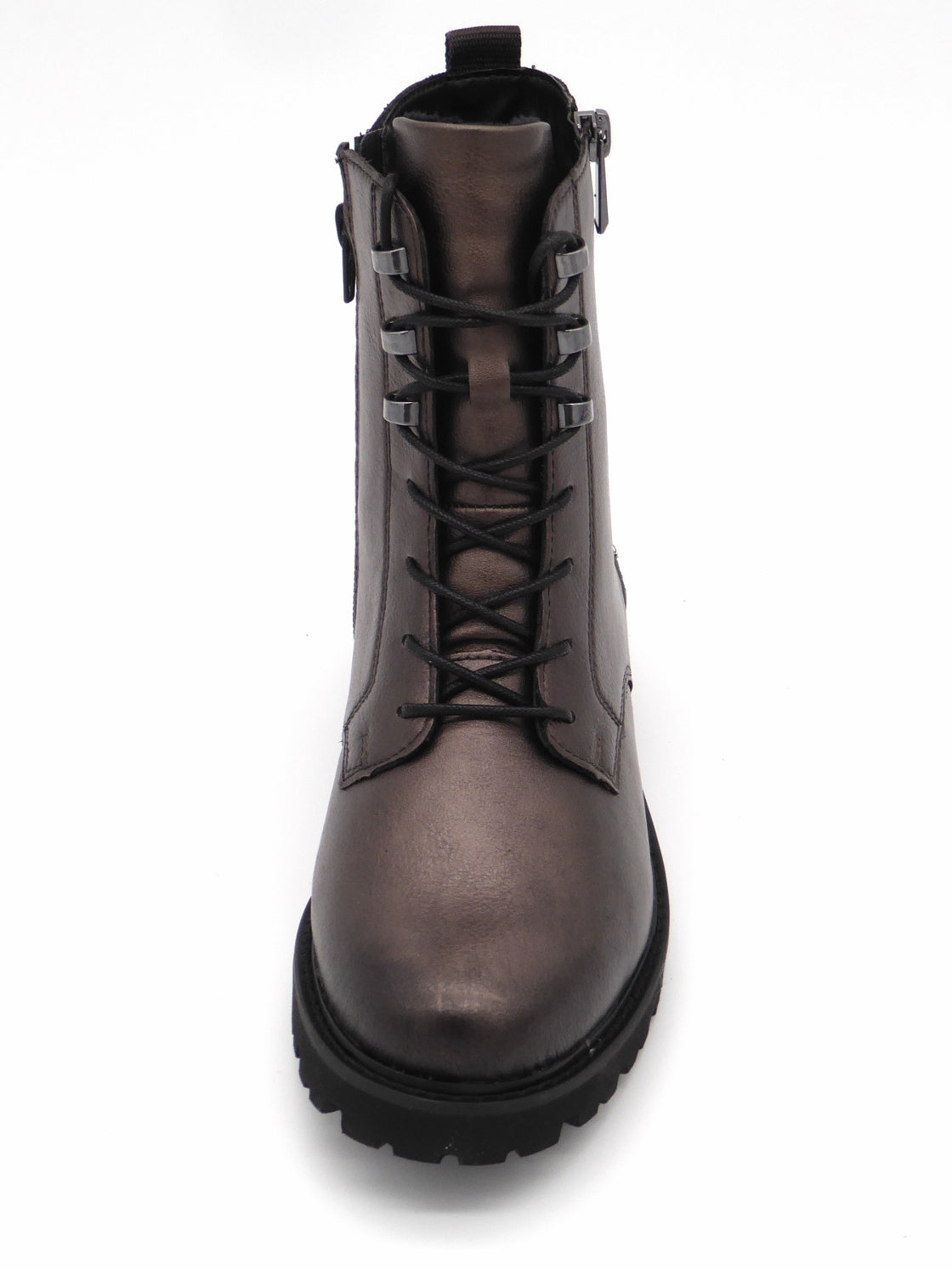 Remonte comfortabele veterboot uit de Remonte Soft serie. Het bovenwerk is van een aangenaam, hoogwaardig metallic leer. De veters in combinatie met de ritssluiting aan de binnenzijde zorgen ervoor dat de schoen gemakkelijk aan- en uit kan worden getrokken. Aan de buitenzijde is een sierrits. Dit model is voorzien van het waterafstotende Remonte-Tex membraam dat beschermt tegen nat, guur en koud weer. De zachte warme voering van is van textiel. De uitneembare binnenzool kan, indien nodig, vervangen worden door losse inlegzolen. De schoen heeft een lichte flexibele EVA-loopzool met een stabiele blokhak.