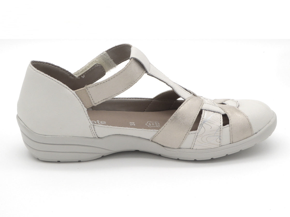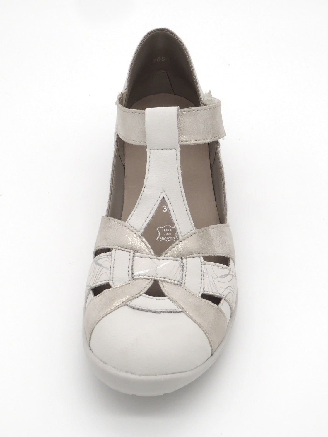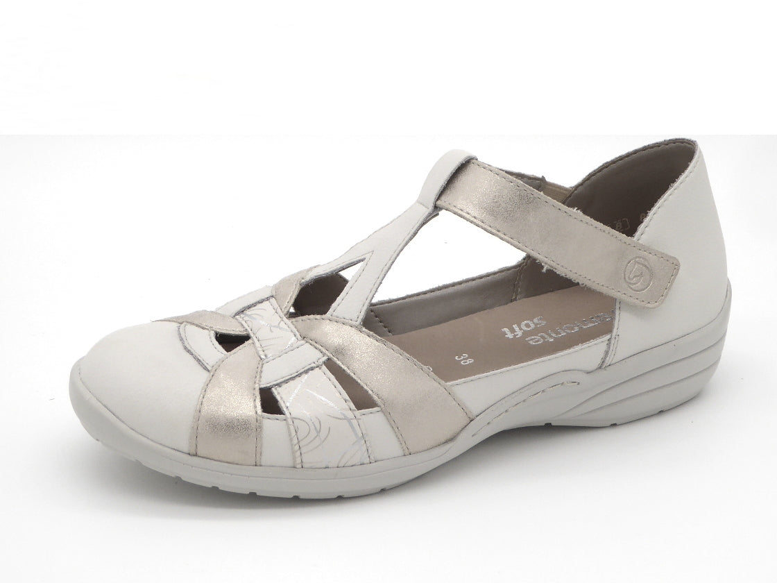 Dames schoen met t-band uit de Remonte Soft collectie. De bandschoen heeft een bovenwerk van leer. De voering is van textiel. Het klittenband zorgt ervoor dat de schoen eenvoudig aan- en uit worden getrokken en biedt de voet stevigheid. Het met leer beklede uitneembare voetbed kan, indien nodig, vervangen worden door losse inlegzolen. De lichtgewicht PU-zool is flexibel. Dit model is gemaakt in een iets bredere leest wijdte H.