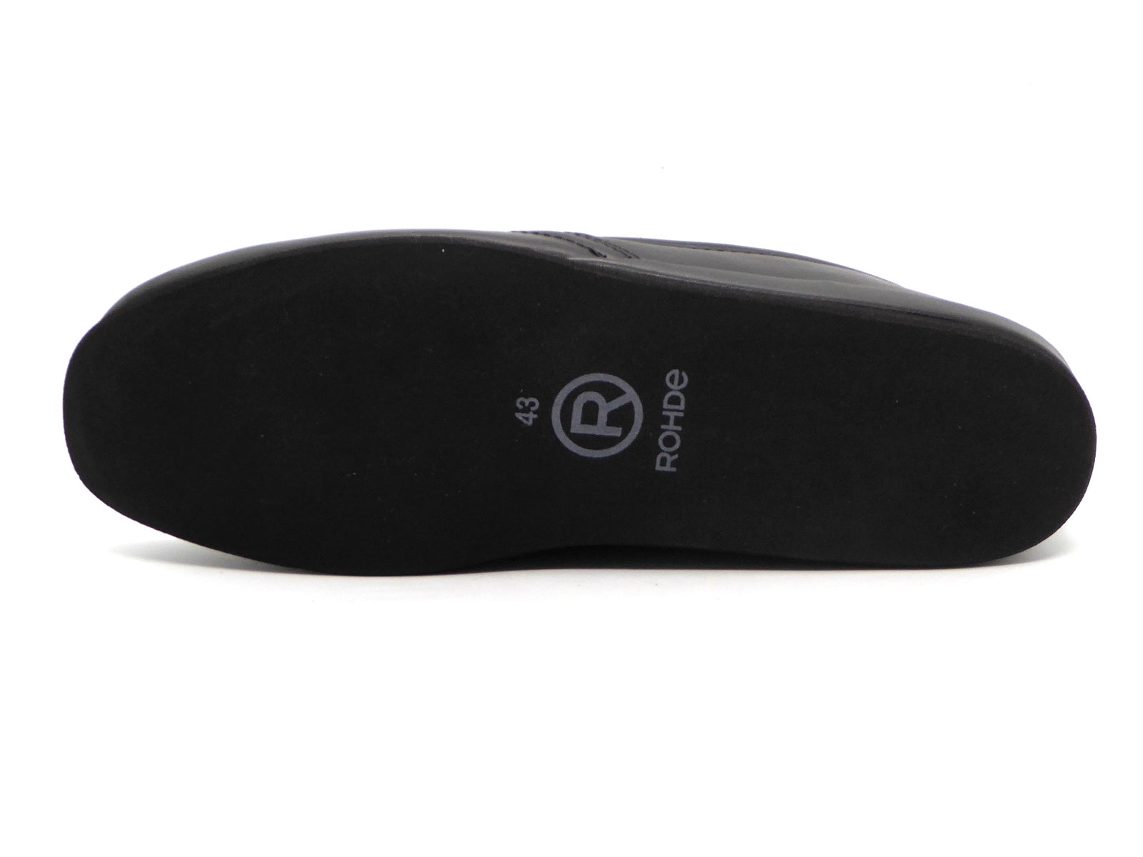 De Rohde heren pantoffel model 6402 heeft een bovenwerk van soepel nappaleer met een voering en binnenzool van textiel. De pasvorm is flexibel door de elastieken inzetten aan de zijkanten. Door de lichtgewicht vlakke poro-zool is deze geschikt voor binnenshuis en maakt weinig geluid met het lopen. Een duurzame pantoffel van zeer hoge kwaliteit met uitstekend comfort! De pantoffel heeft wijdtemaat G en heeft een vast voetbad.
