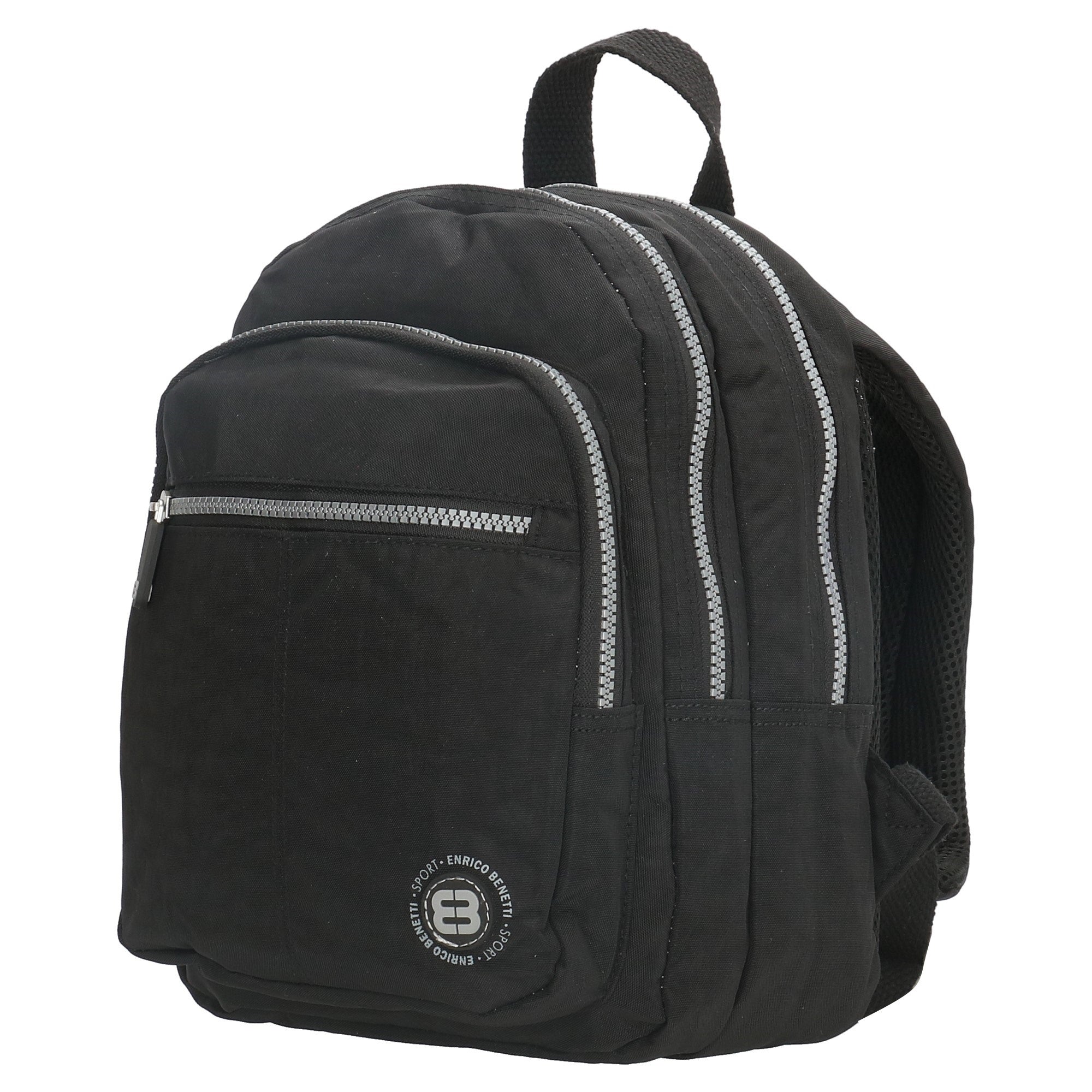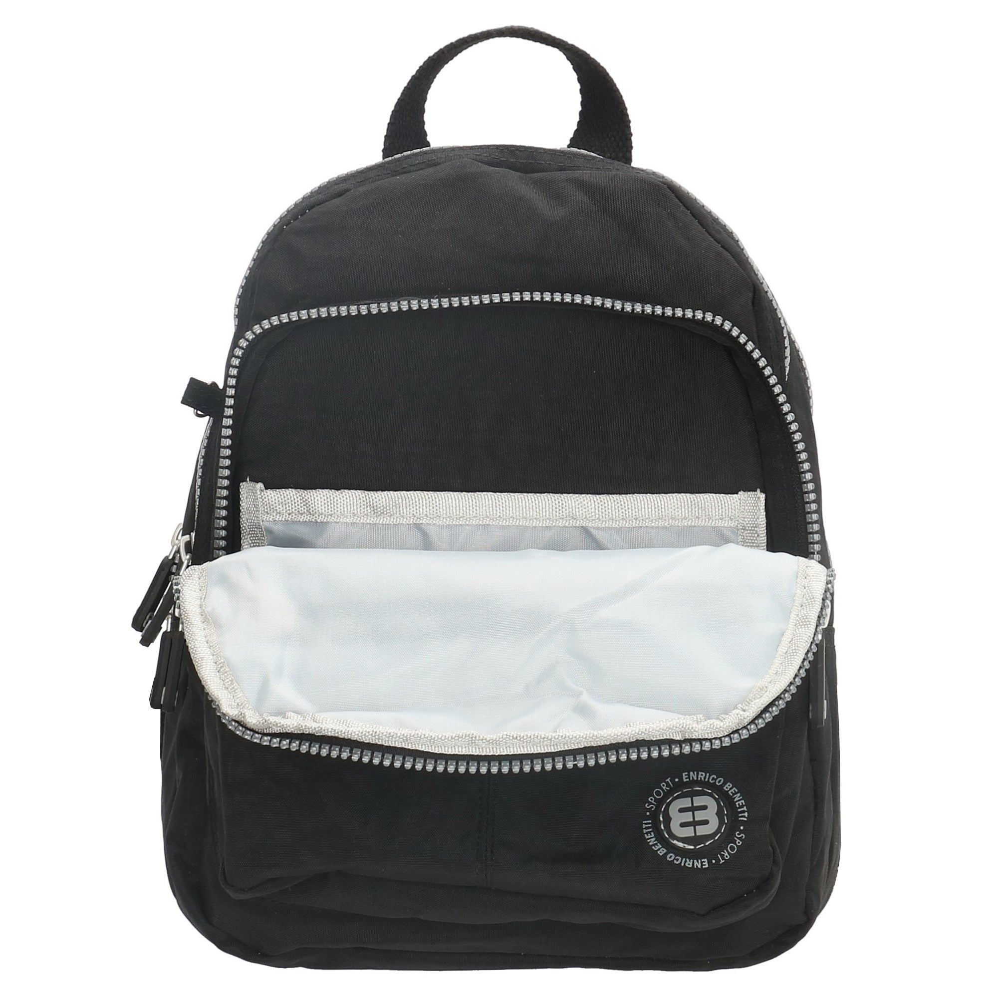 Met deze rugtas uit de crinkle nylon serie Frances van Enrico Benetti heb je genoeg opbergvakjes om al je spullen op te bergen. De tas heeft twee hoofdvakken, twee voorvakken, waarvan één voorzien van organizer voor je kleinste spulletjes. Tevens heeft de tas een extra veilig vak op de rug en hebben alle vakken een ritssluiting. De rugtas is afgewerkt met grove contrasterende kunststof ritsen en sportieve rubberen details. De schouderband is van mooi mee gekleurd katoen en is verstelbaar. De rugtas is verkrijgbaar in blauw, grijs, zwart en olijf en tevens zijn er binnen de Frances serie ook schoudertassen en een heuptas beschikbaar.