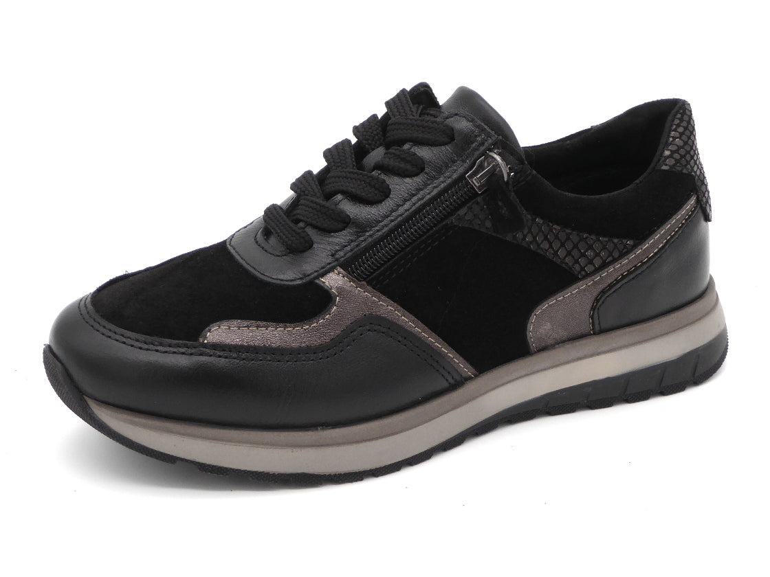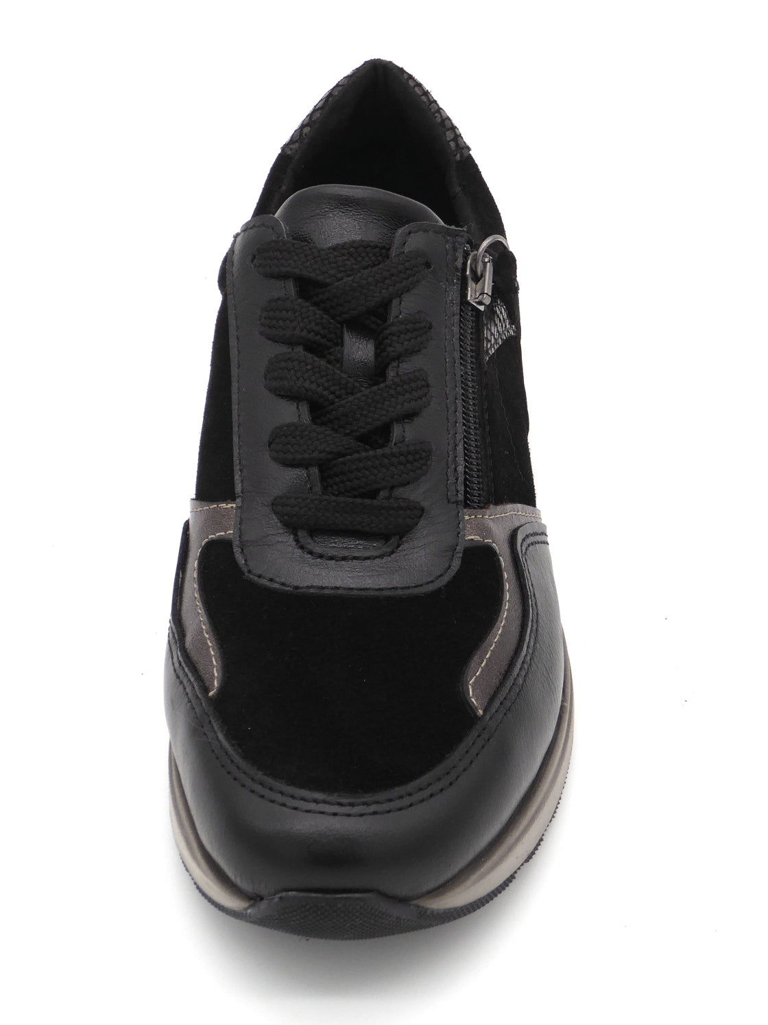 Sens comfort dames sneaker, uitgevoerd in een combinatie van diverse leersoorten. De sneaker heeft een veters en een rits die je extra instapruimte geeft. De voering is van textiel. De schoen heeft een uitneembaar voetbed dat, indien nodig, vervangen kan worden door eigen zolen. Dit model is gemaakt in een brede leest wijdte K en heeft een sportieve rubberzool dat bijdraagt aan een geweldig loopcomfort.